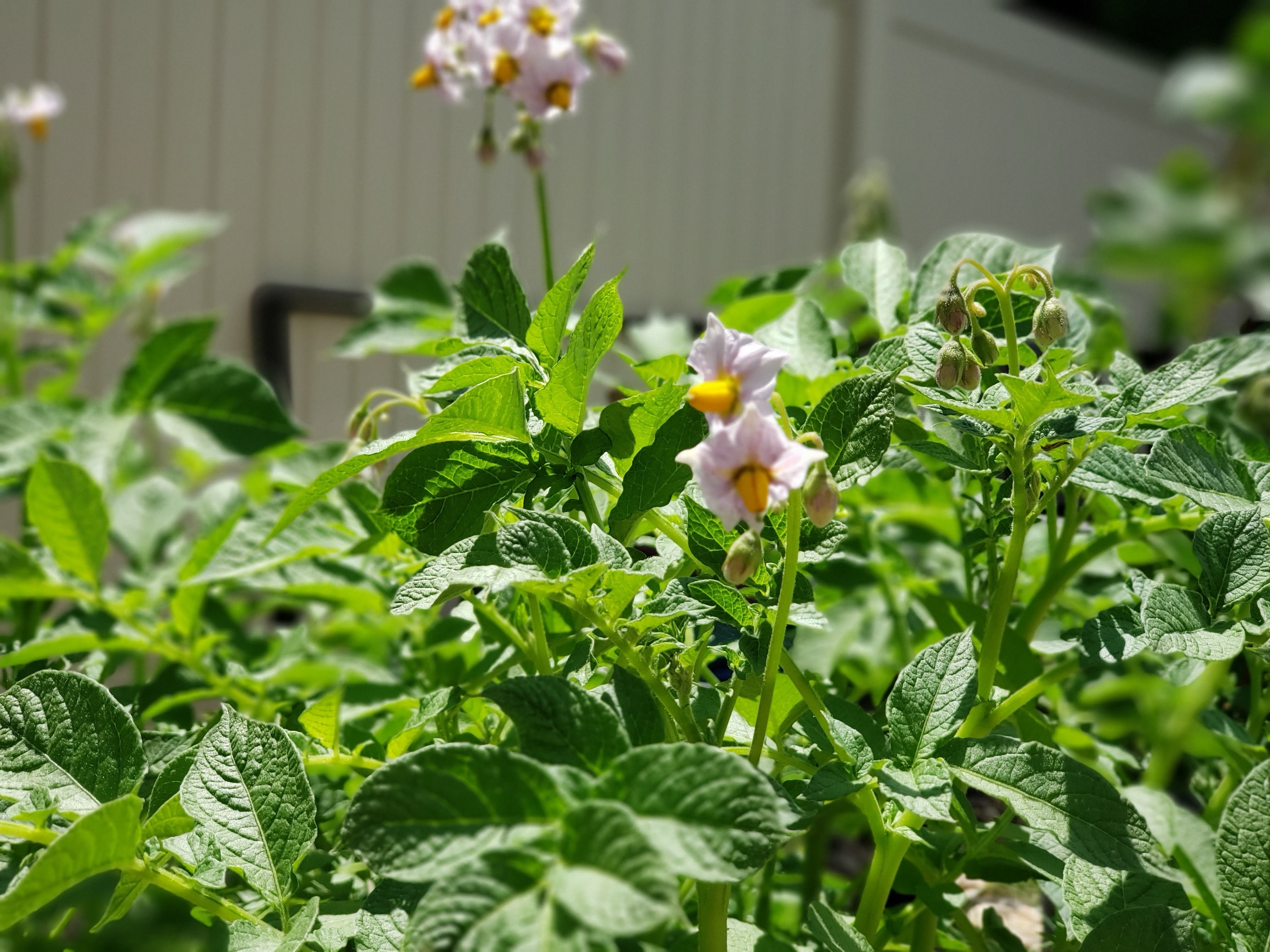 For the other four bags, I’m going to keep hand watering as necessary, until they finish dying. Just in case there’s another edible potato or two to come. At the end of the season I’m going to dump the bags and the soil entirely, maybe even burn them all (burning everything is one of the…