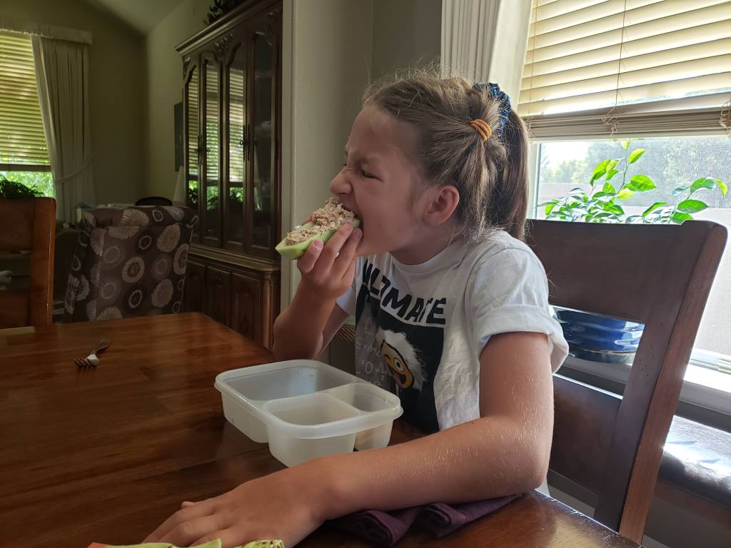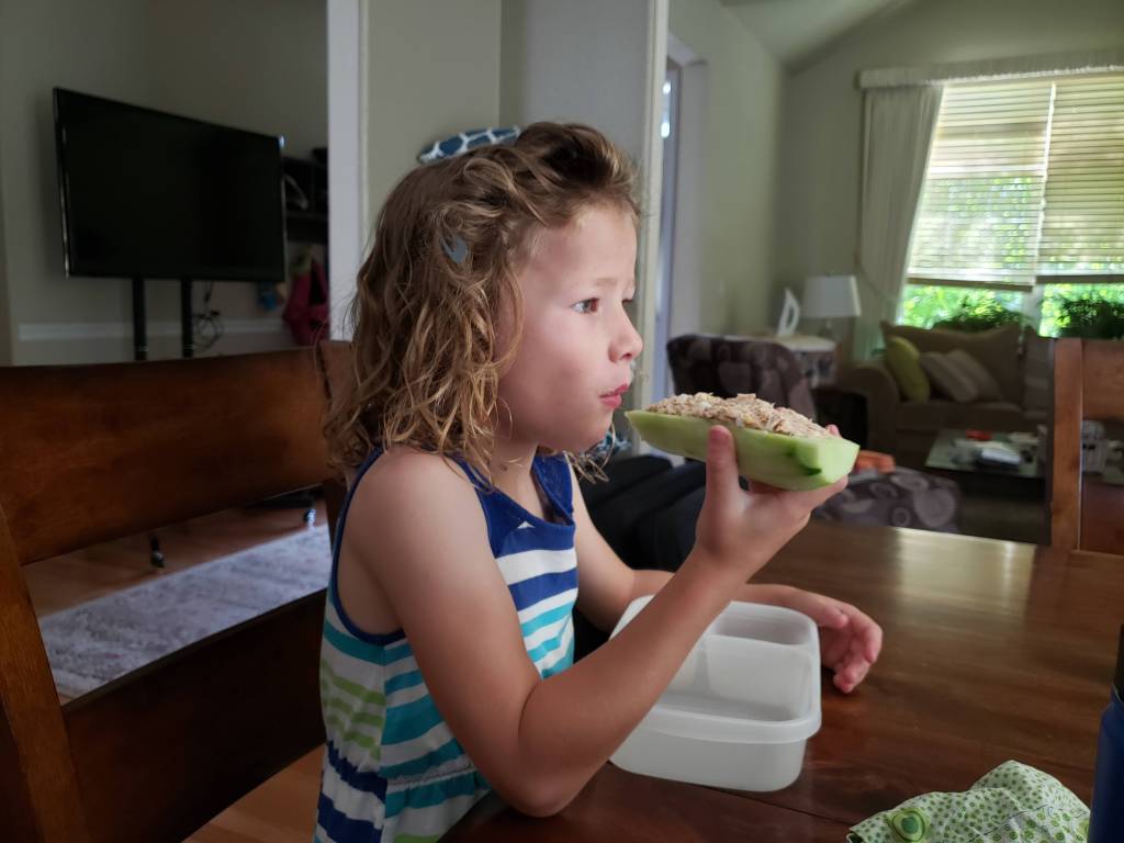 When I have too many cucumbers to save, another great trick to use them up is to make cucumber boats! My kids love tuna salad cucumber boats. I even send them in their school lunches! Simply skin and halve a cuke lengthwise, scoop out the seeds to make a cuke canoe, then whip up some easy tuna salad and load it into the boat! I’m certain this would work for all kinds of yummy fillings!