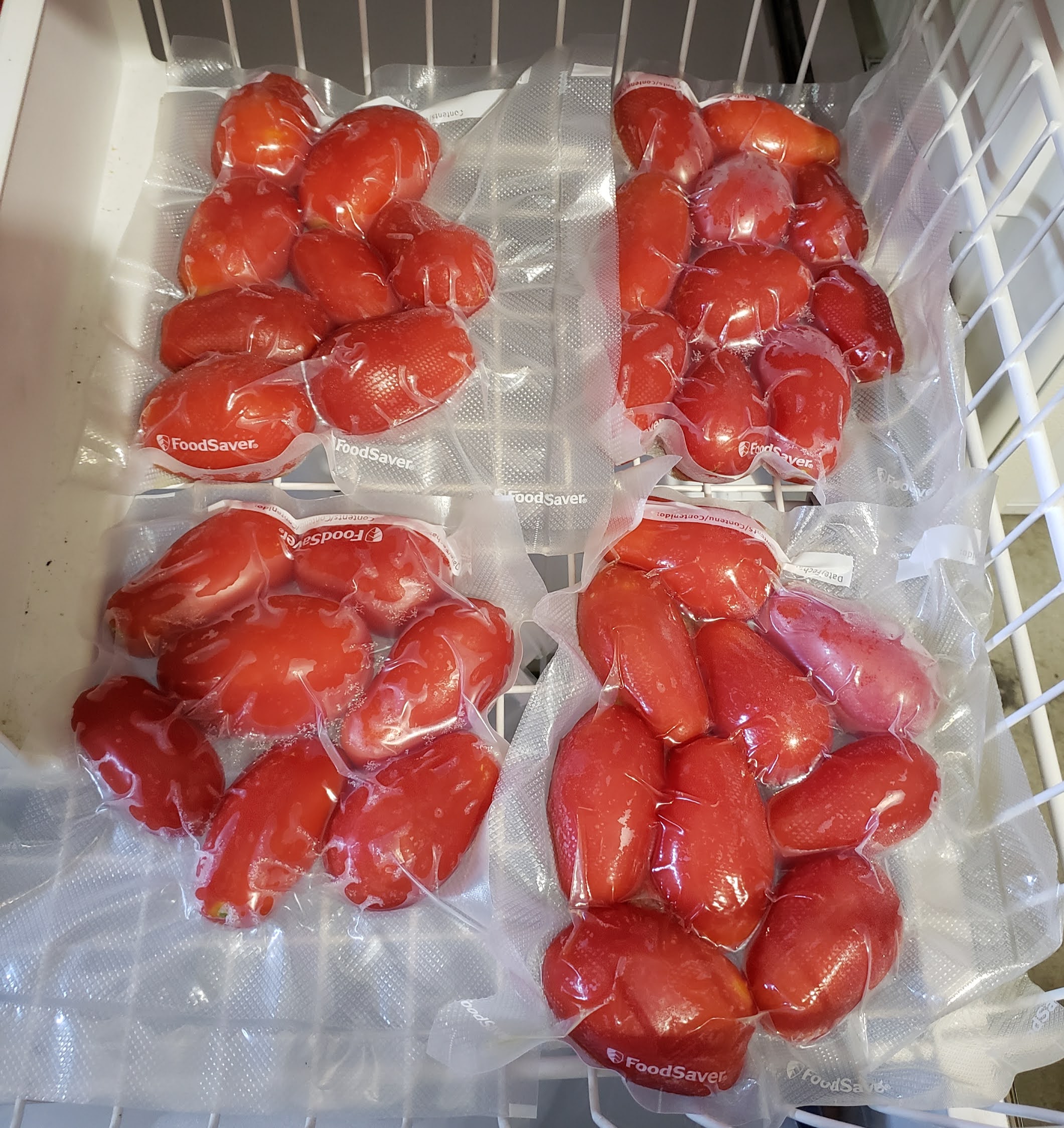 So far, I’m in love with this method because it’s so easy! You freeze them whole, then put them in a vacuum sealed bag or Ziploc, and you’re good for like a year! I cannot yet speak to how great the ‘maters are when defrosted, but Homemade Food Junkie can and does on her recipe page (link above). She also has recommendations for different varieties of tomatoes.