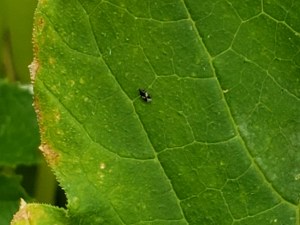 Therefore, I have to use organic methods as well: I pluck or shake the assbaskets off of the leaves and into a soapy water solution, where they promptly drown.