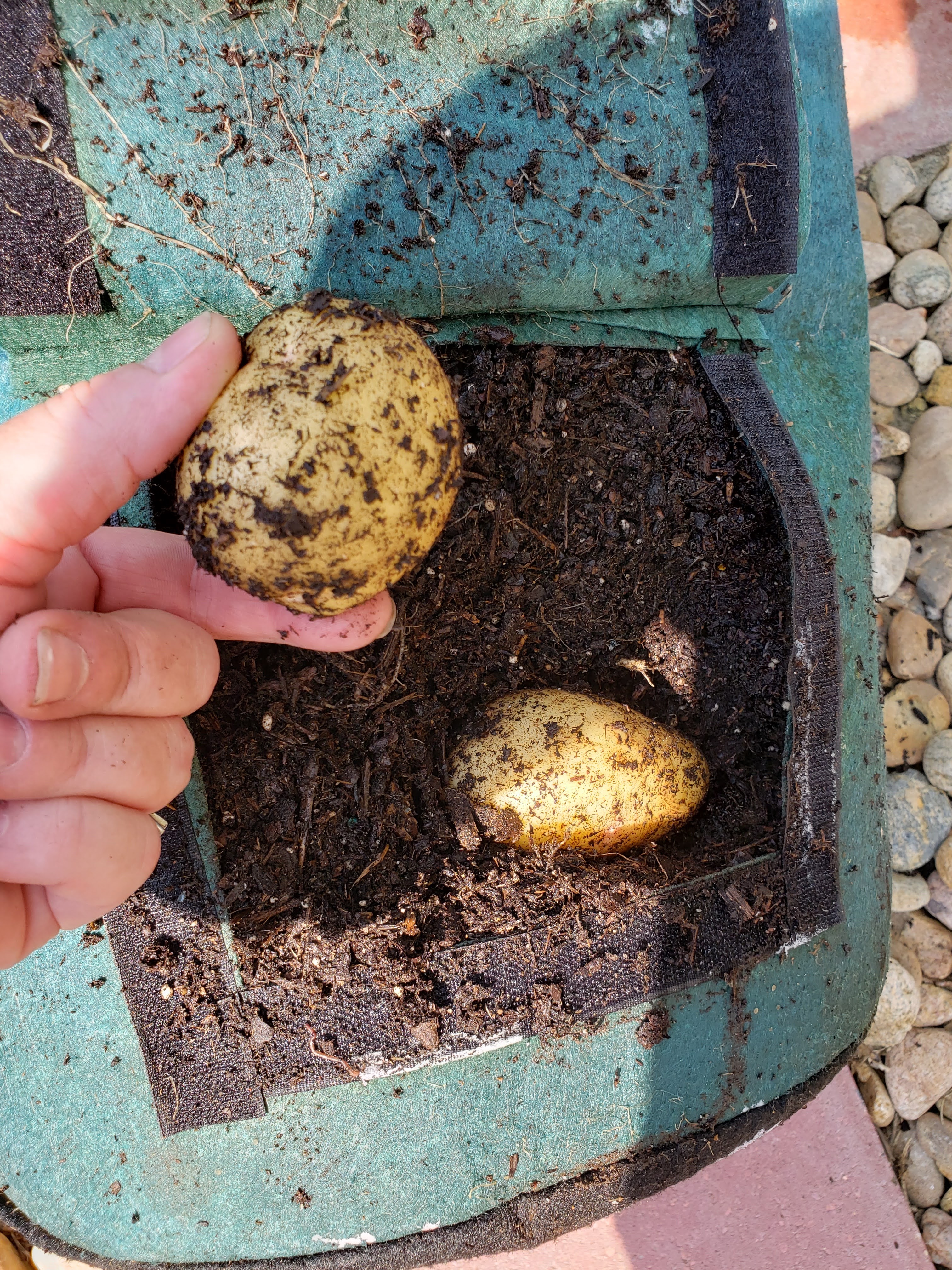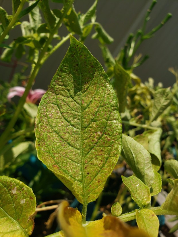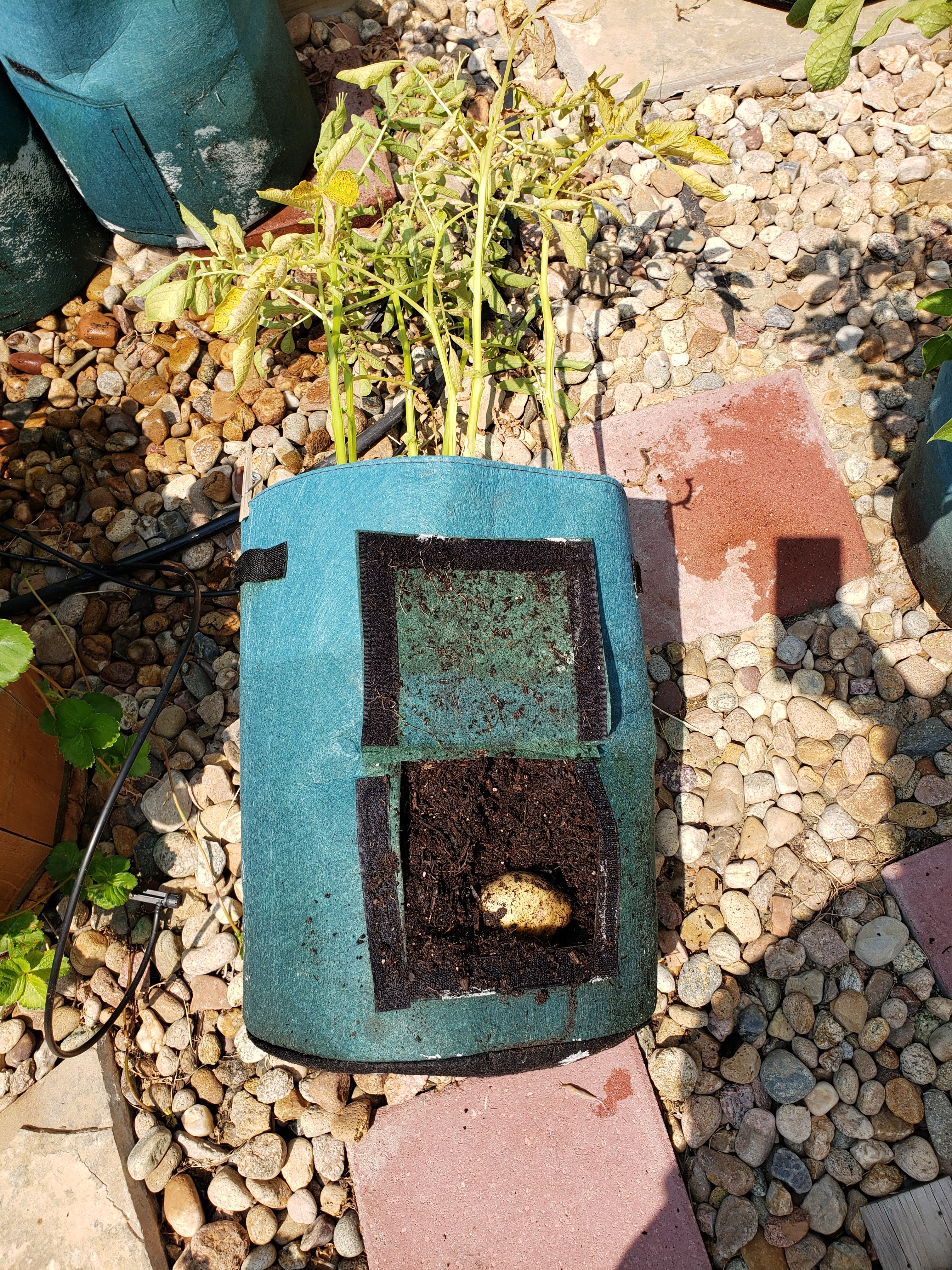 The potatoes are dead. I’ve not been able to find the reason. They started huge and beautiful and green and flowery. And then their leaves turned yellow and died. After much research and several attempts to fix them with nutrition – as there was no insect activity – I have come to believe it was fungal, viral, or bacterial in nature. See this earlier post for details: What’s STILL wrong with the potatoes?